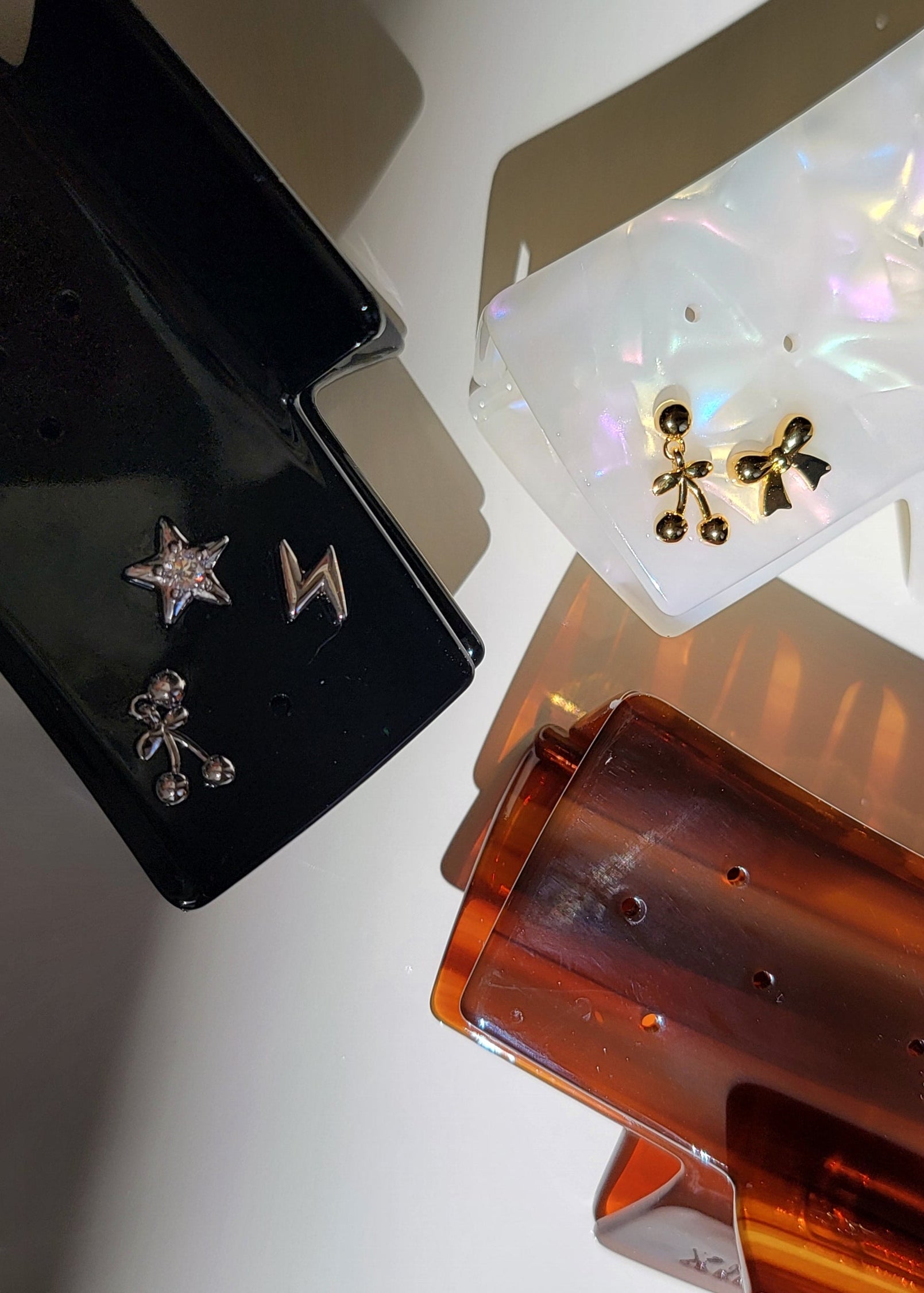 Add a playful charm to your Bijoux classic claw clip with the Cherry Dangle Charm. Featuring twin cherries and dainty leaves, this charm swings with every step, adding movement and just the right amount of fun.