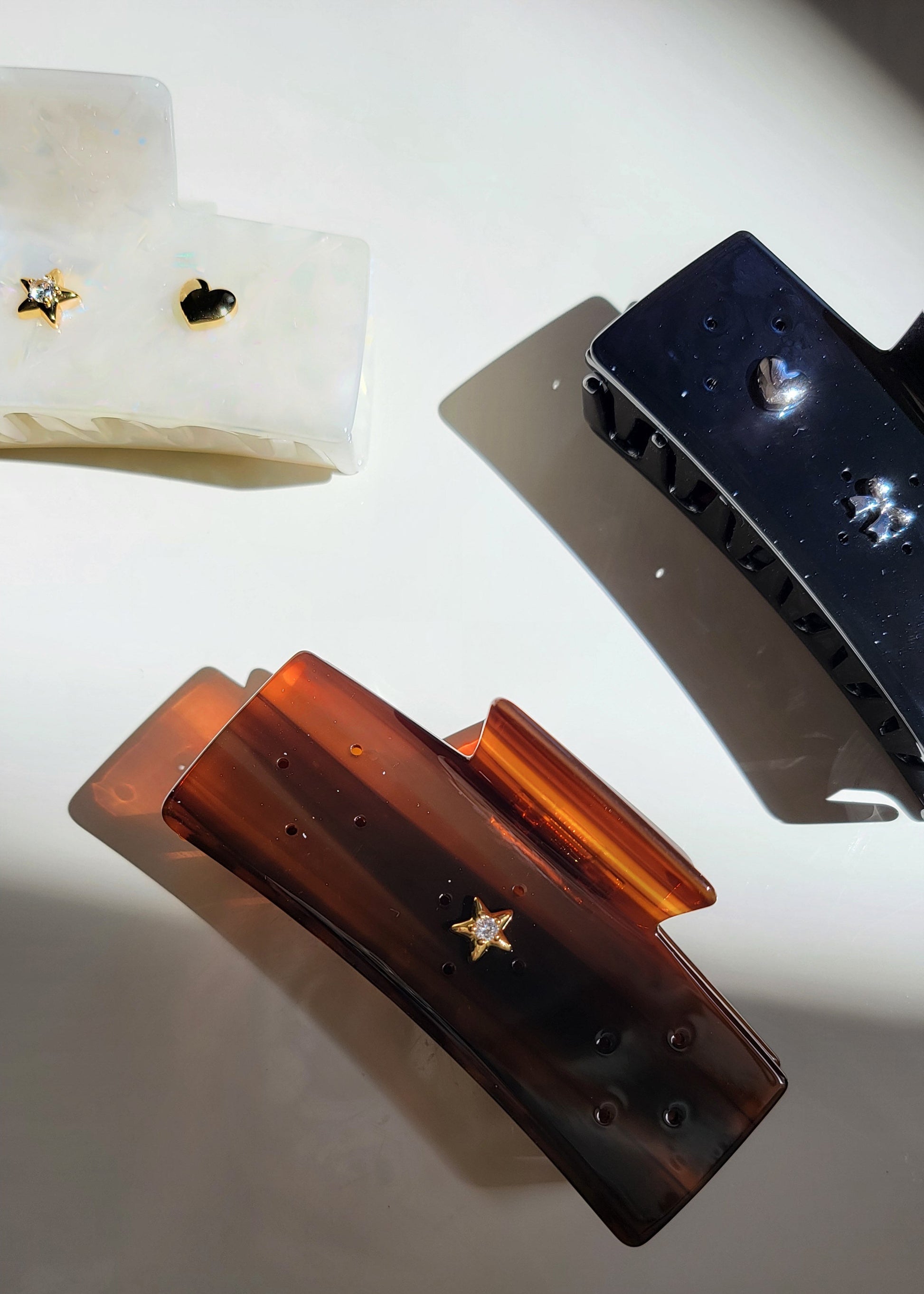 Crafted from eco-friendly cellulose acetate, our Bijoux claw clip delivers a secure hold and effortless style. Personalize it with our charms* to switch up your look anytime.